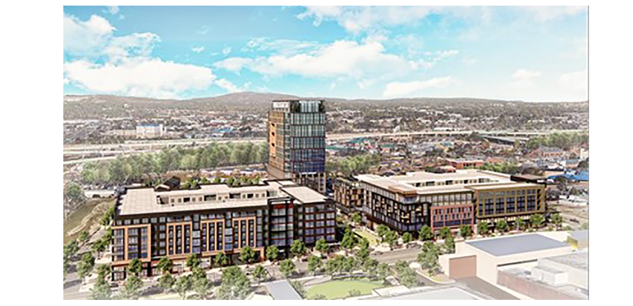 The first phase of the project will include 40,000 square feet of retail space and chef-inspired restaurants, 500 top-line multifamily residences with full amenities, and up to 50,000 square-feet of Class-A dynamic office space. It will surround a large greenspace with an urban plaza for community events at downtown’s social epicenter.