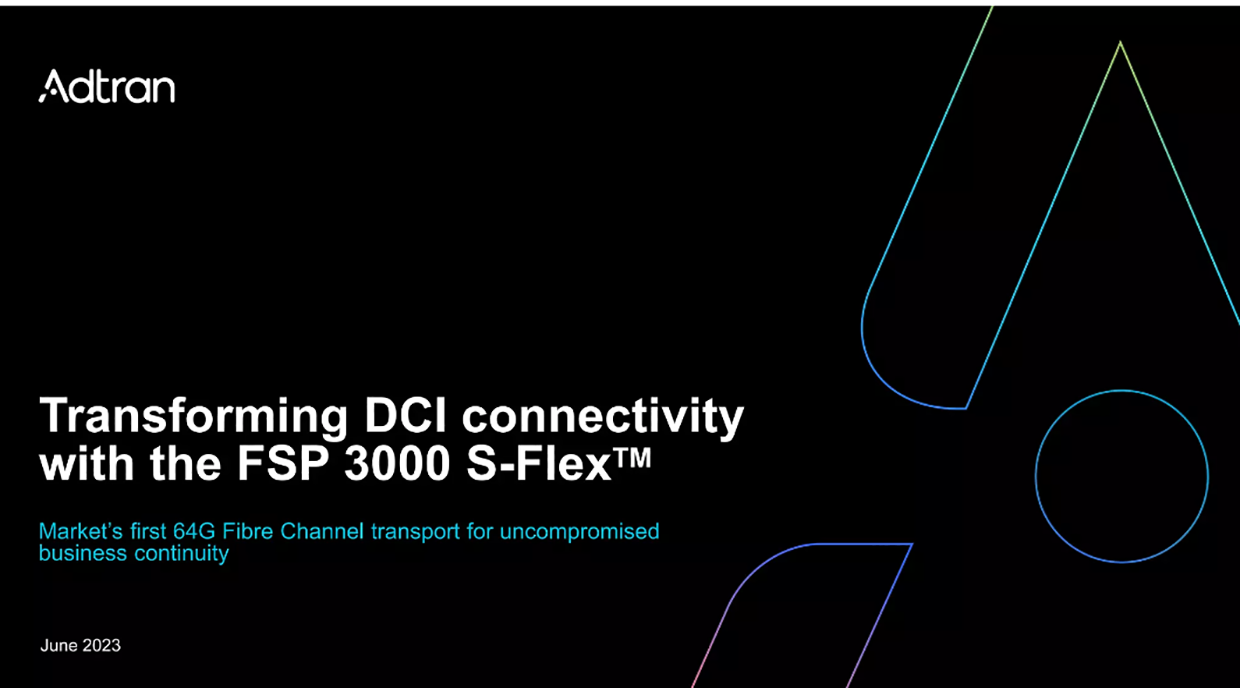 Adtran’s FSP 3000 S-Flex 40G muxponder is the first solution of its kind capable of native 64G Fibre Channel transmission over dense wavelength-division multiplexing. It is a fiber optics technology used to increase the bandwidth of existing fiber networks rather than rebuilding or upgrading them, the company said.