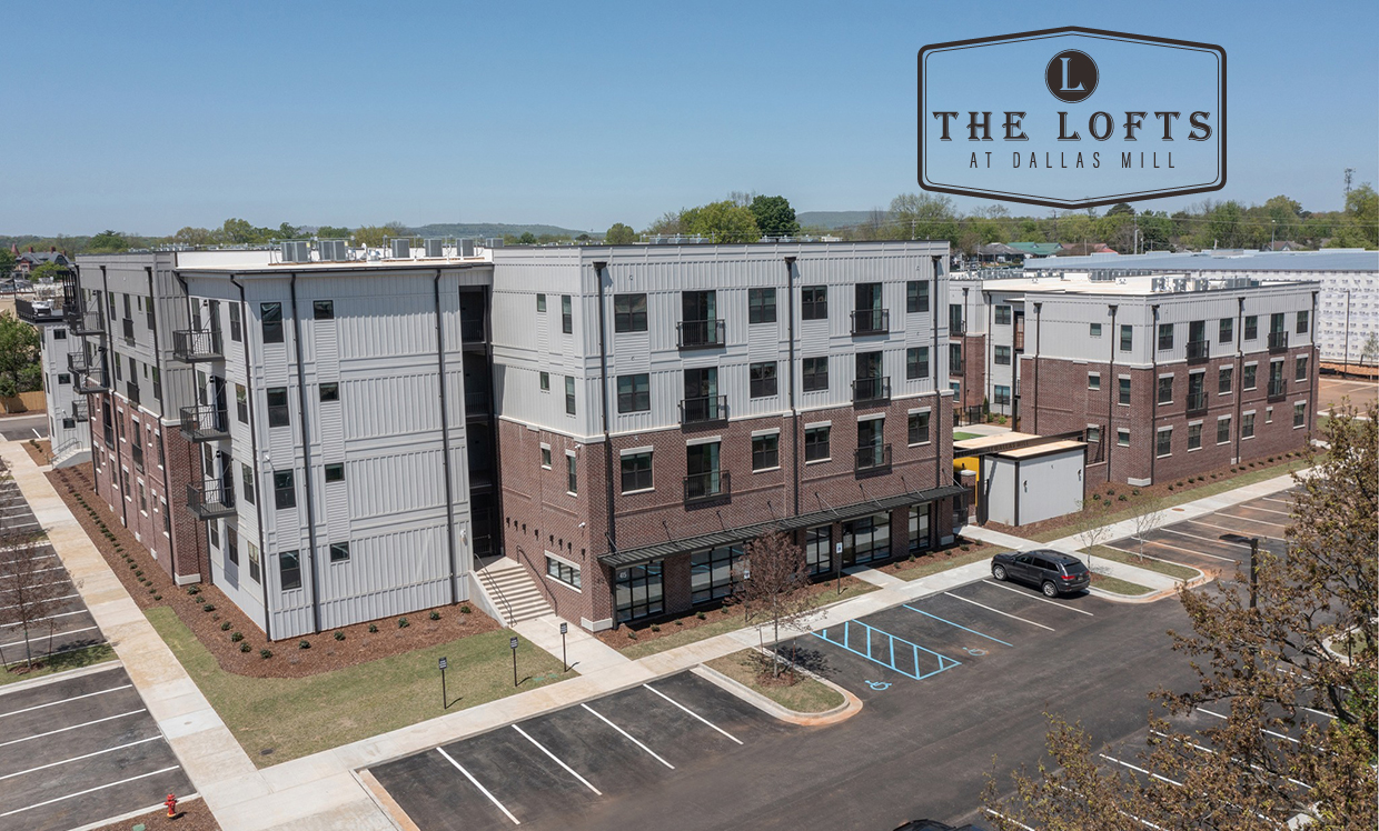 Located in the Five Points area of Huntsville near downtown, the 4.3-acre, 148-unit apartment complex sits on the site of the former Dallas Mill, the first of four major textile mills built in Huntsville in the late 1800s.