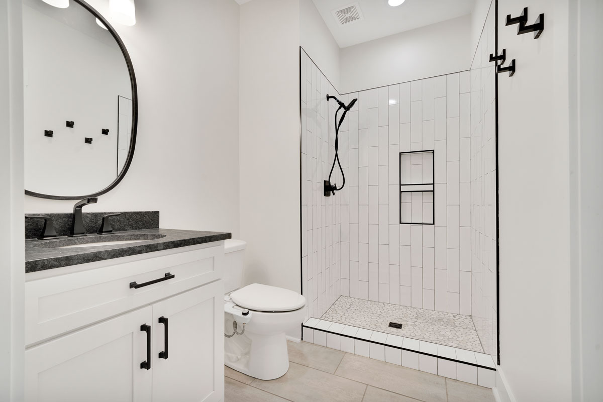 With 18 lots ranging from one-third of an acre to four acres, the development offers multiple open-floor plans. The houses feature high-end amenities such as custom cabinetry, quartz or granite countertops, luxury flooring, walk-in tile showers, vaulted ceilings, natural gas fireplaces, detailed trim and crown molding, butler pantries, and concrete porches with tongue and groove pine ceilings. The yards are fully sodded and properties are backed by a one-year home warranty.