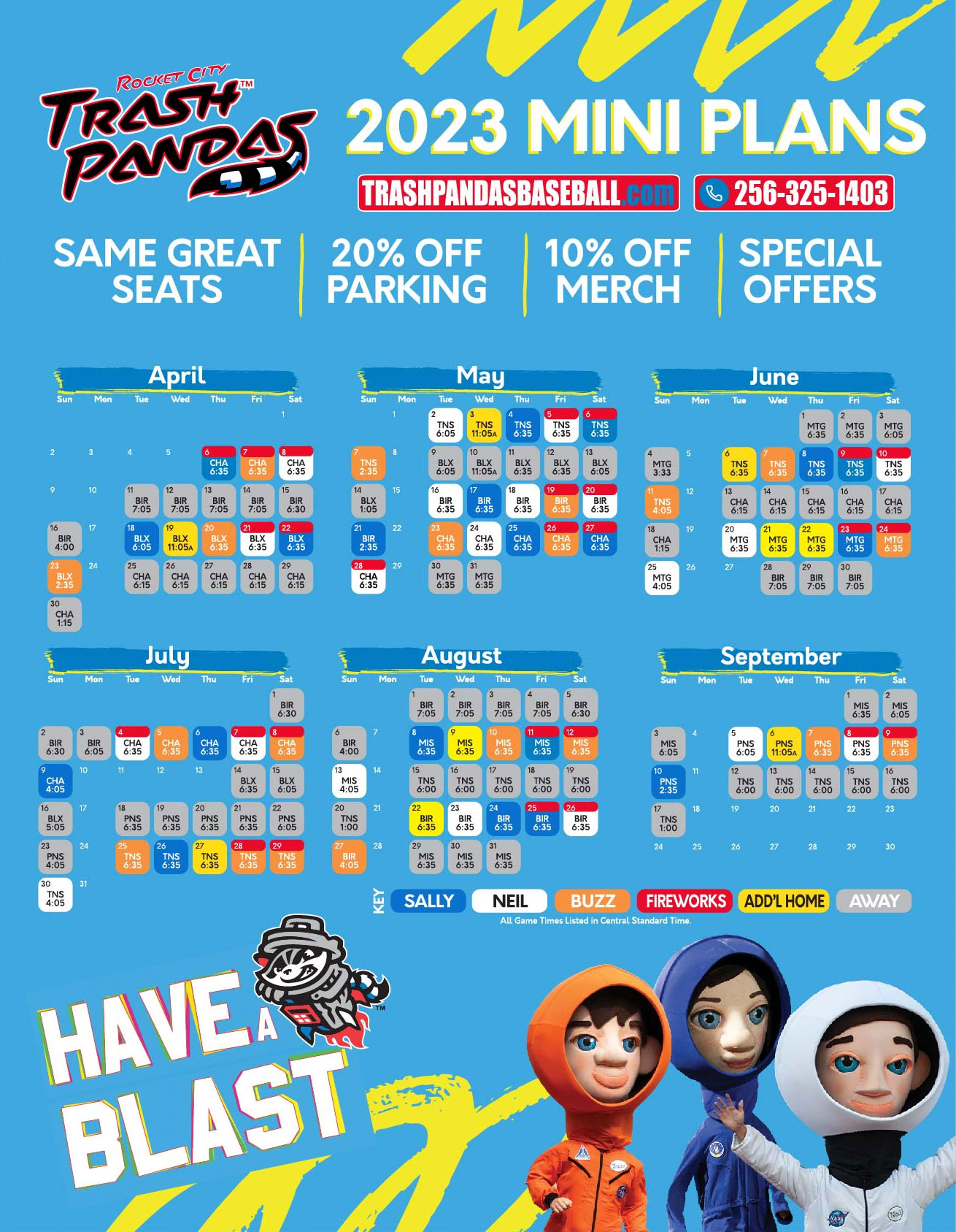 The full 2023 Trash Pandas promotional schedule will be released in the coming weeks, with fan favorites such as bobbleheads, jersey auctions, and more returning this season.