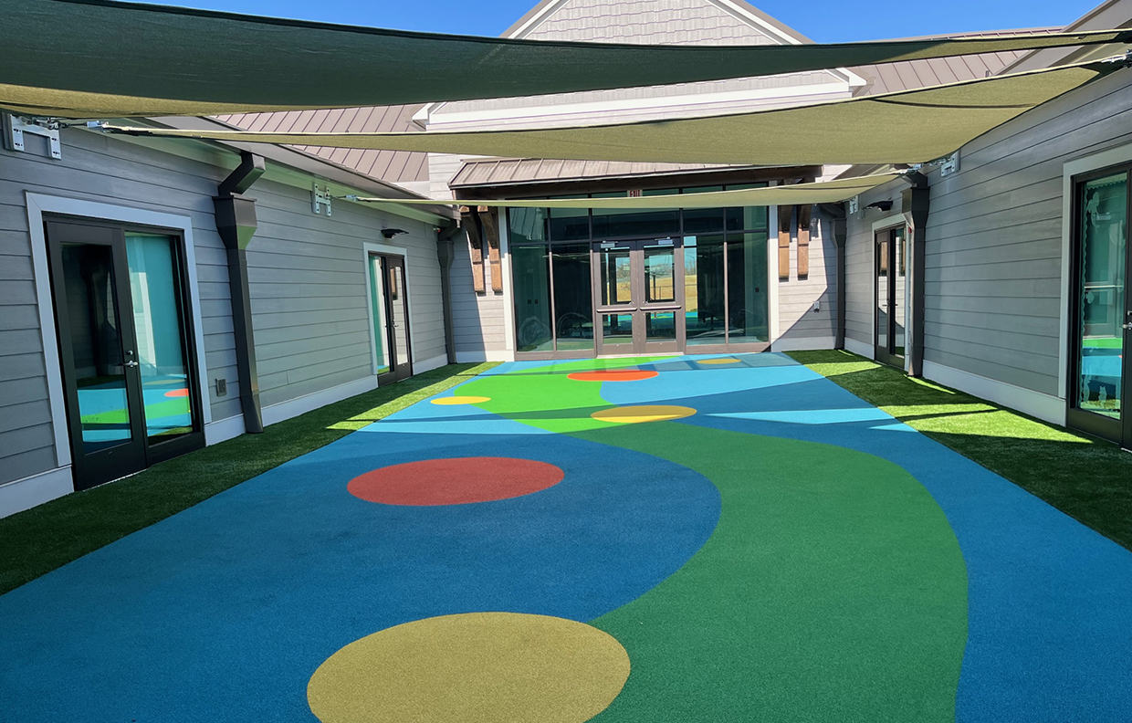 The school also includes an artificial turf soccer field, infant courtyard, a splash pad, and covered playgrounds.