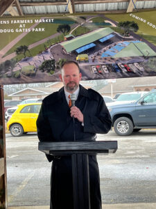 ATHENS — It was a shivering February morning, but several dozen Athens residents and city leaders braved the wintry weather to kick off the renovation of the Athens Farmers’ Market, and the expansion of Doug Gates Park, named for the late city councilman.