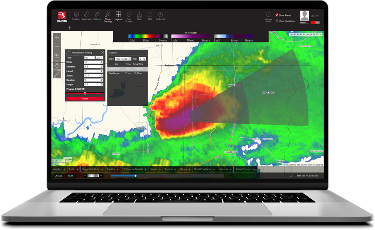 As a manufacturer of Doppler Weather Radar and the innovator of storm detection algorithms, Baron is a leader in significant weather detection. By applying science to real-world applications, Baron offers a differentiated catalog of weather parameters.