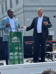 While VIPs spoke from an outdoor stage, the party continued with live music into the evening.