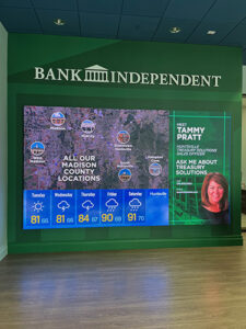 The grand and welcoming first floor is easy, convenient and practical for customers. There is a digital wall showing all the growing bank’s more than 30 locations and more than 20 satellite or ATM locations. The bank’s footprint spreads from its hometown of Sheffield to Red Bay, Russellville, Courtland, Leighton, Florence, Muscle Shoals, Lexington, Madison and Huntsville.