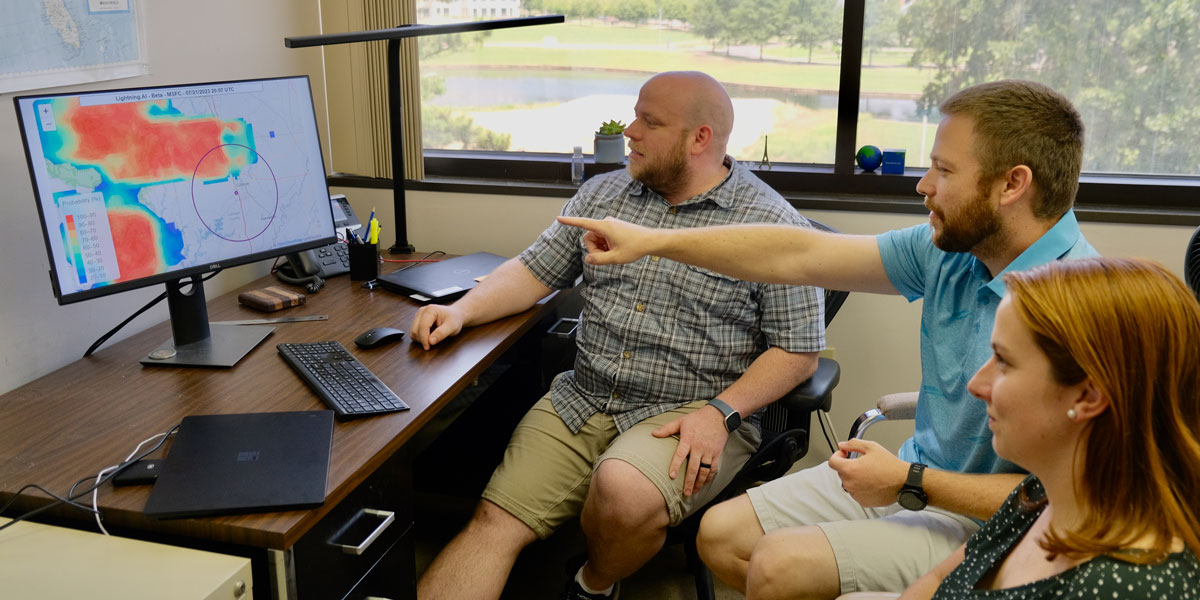 UAH Research Scientist Dr. Andrew White, through a cooperative agreement between the Marshall Space Flight Center and UAH, developed the NASA Short-term Prediction Research and Transition Center’s Lightning-Artificial Intelligence (AI) tool known as SPoRT which can predict the probability of the threat of lightning up to 15 minutes before an actual strike occurs. The product was developed using machine-learning techniques along with consulting support from fellow UAH Research Scientist Dr. Robert Junod.