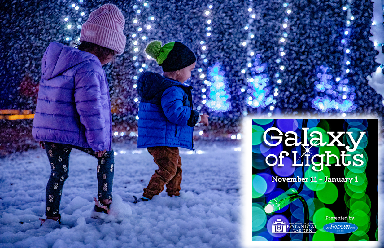 With that, the Huntsville Botanical Gardens’ Galaxy of Lights traditionally marks the arrival of the Christmas holidays in Huntsville. In its 27th year, the award-winning driving and walking event starts Nov. 11 and runs through Jan. 1.