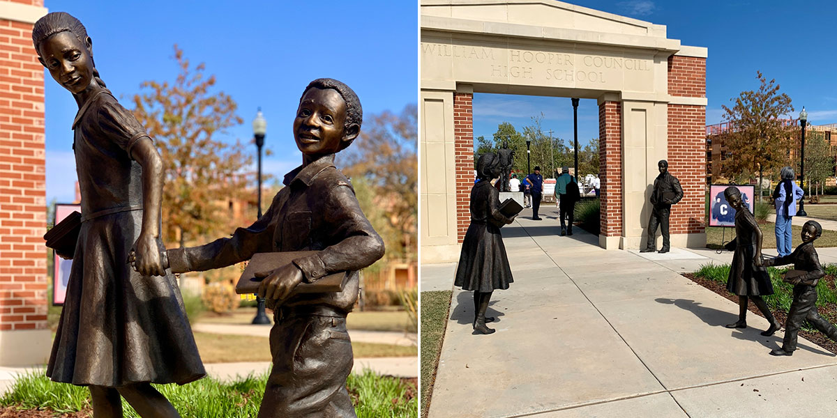 Bricks and stones from the structure, however, were saved and are now part of the park. The four statues were added near an archway that represents the front of the old high school with an 8-foot tall monument to Councill placed as if he was welcoming students.