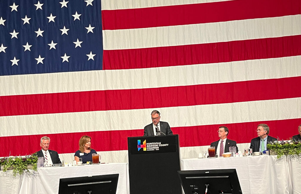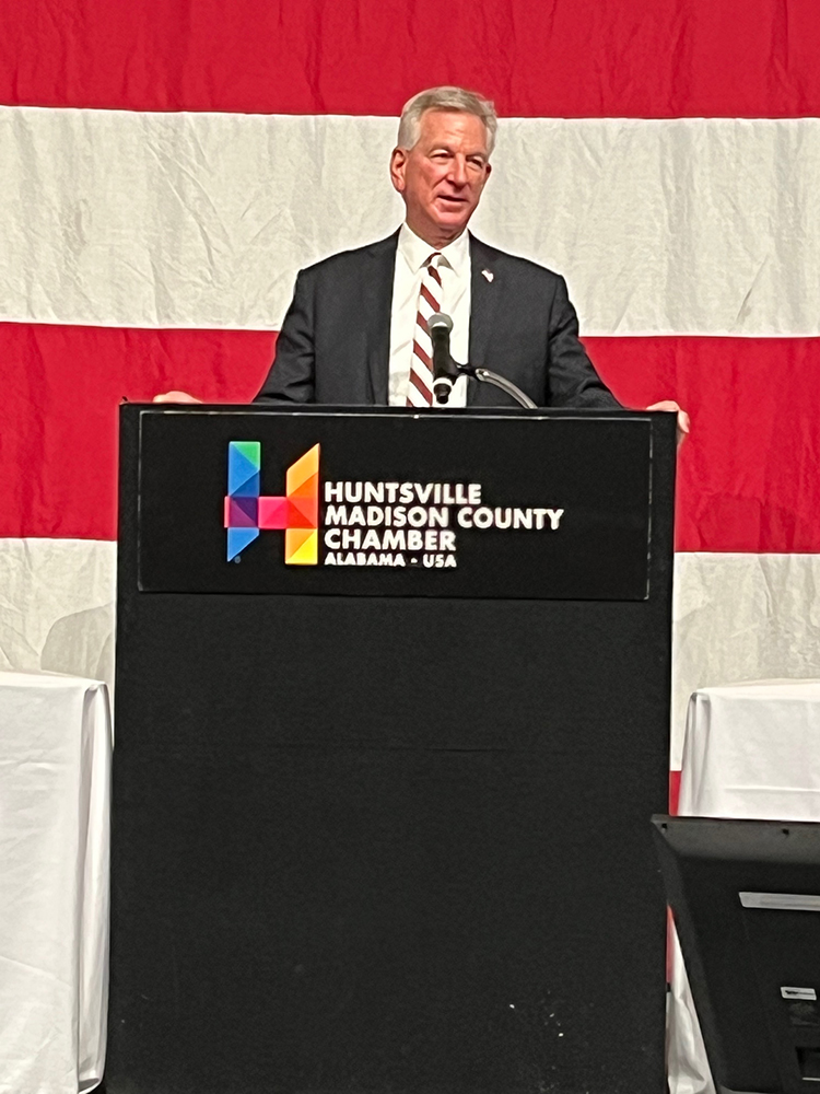 U.S. Sen. Tommy Tuberville spoke of Huntsville’s unique role in protecting the country against these threats during the Huntsville/Madison County Chamber’s Washington Update.