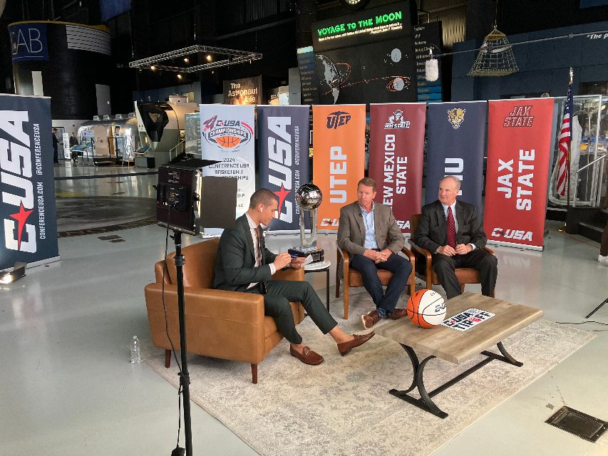 HUNTSVILLE – With memorabilia lining the walls and hanging from the rafters telling the story of Huntsville’s early participation in space flight, Conference USA launched its 2023-24 basketball season with Tipoff and Media Days at the Davidson Center on the campus of the U.S. Space & Rocket Center.