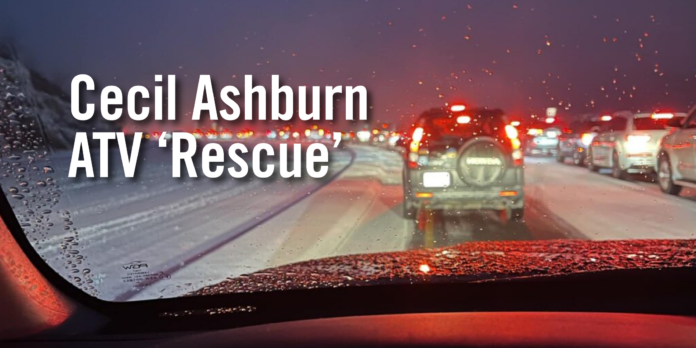 “They said that there were hundreds of cars stuck and just sliding into one another,” she said. “So we bundled up and got the four wheeler out to go get them.”