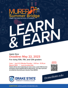 The Summer Bridge Camp for high school students is sponsored by NASA’s Minority University Research and Education Project. The camp runs June 5-22.