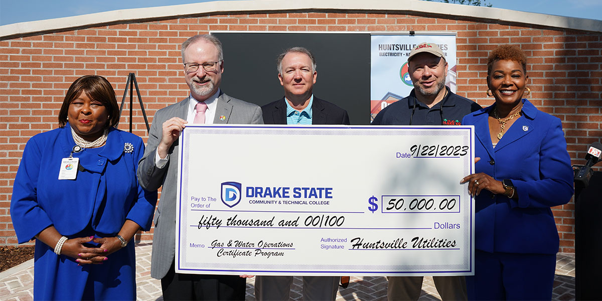“We are thrilled to collaborate with Huntsville Utilities on the Gas and Water Operation Certification Scholarship Program, offering alternative pathways to careers in this sector,” said Dr. Patricia Sims, President of Drake State Community and Technical College. “With Huntsville Utilities’ expertise, we’re providing industry-relevant training, and their $50,000 donation ensures students receive essential support.