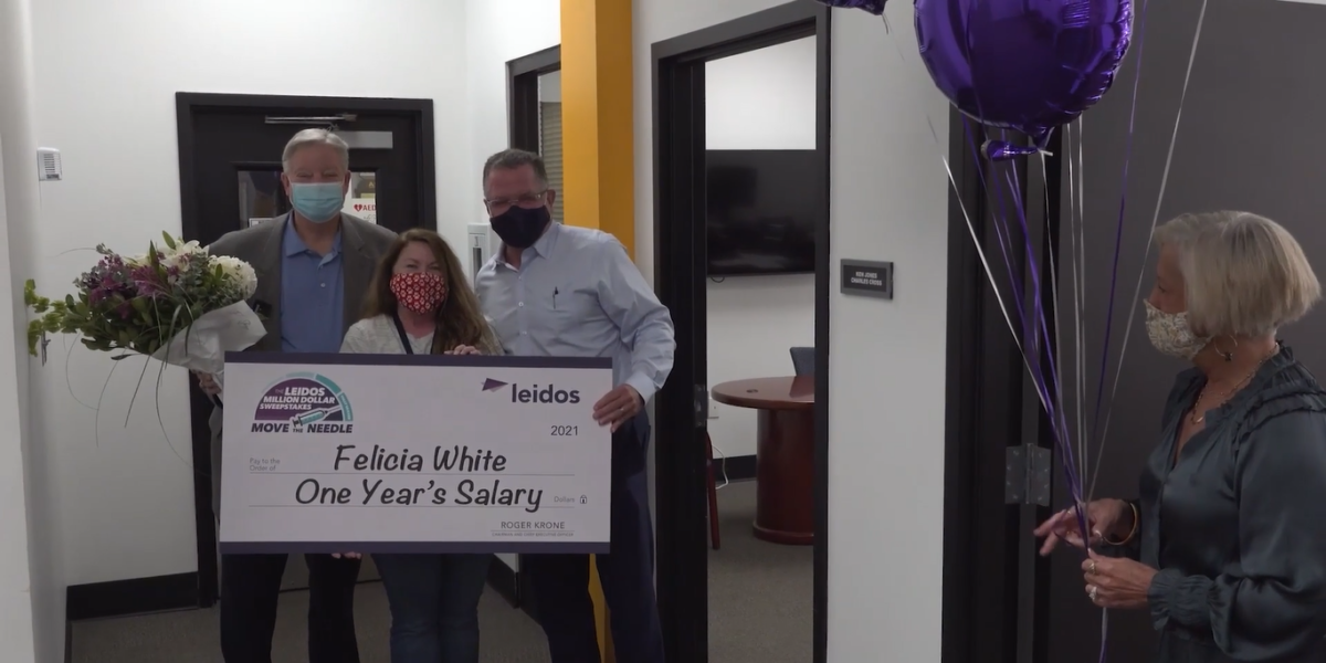 Senior material control analyst Felicia White was presented by Leidos officials with one year’s salary as her financial reward for becoming inoculated against the virus.