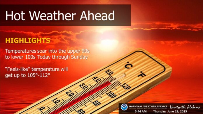 “Temperatures will soar into the upper 90 to lower 100s today through Sunday,” the office said. “‘Feel like’ temperatures will get up to 105 to 112 degrees.”