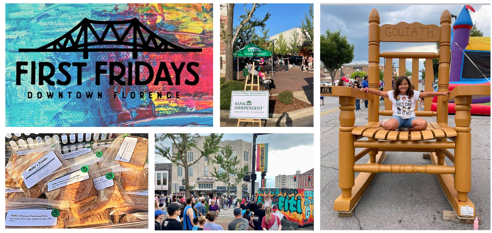 FLORENCE – Presented by Bank Independent, First Fridays gets underway this weekend in one of North Alabama’s prettiest downtowns with art, music, shopping and entertainment.