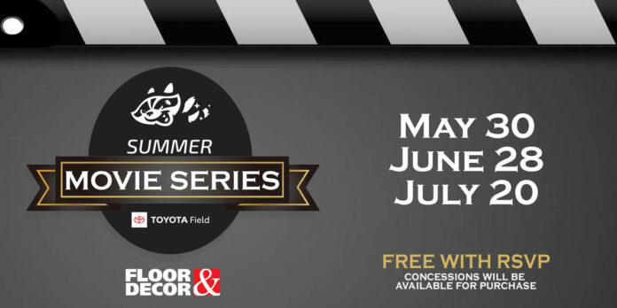 The showings will be May 30, June 28 and July 20. The movie titles will be released in the coming weeks. The Pepsi Gate at Toyota Field will open at 6 p.m. all three nights with showtimes at 7. Parking is free.