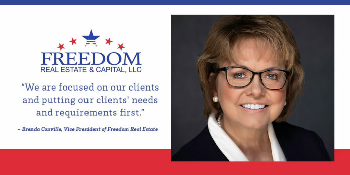 Brenda Conville, the vice president of Real Estate for Freedom Real Estate and Capital, LLC, leads the team in the day-to-day operations of the company, including the brokerage activities as well as overseeing the property management, financial operations, marketing and tenant relations.