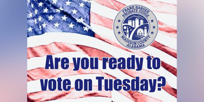 HUNTSVILLE – With the polls opening at 7 a.m. tomorrow, Madison County Probate Judge Frank Barger is reminding voters to be prepared for the primary election Tuesday.