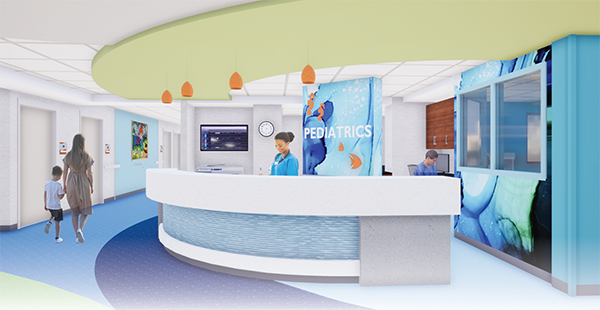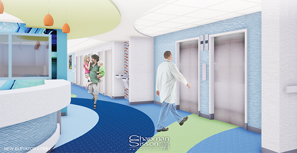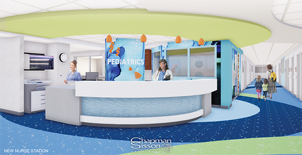 “The goal of this renovation is to breathe new life into the pediatric department and make a space that children can truly connect with and enjoy,” said Martin Sisson, founder of Chapman Sisson Architects. “The subtle underwater theme will achieve this through intentional use of updated colors, materials, textures, and patterns that resemble those found in the ocean. The comforting blues and playful spaces will enhance the hospital experience – both for patients and their families.”
