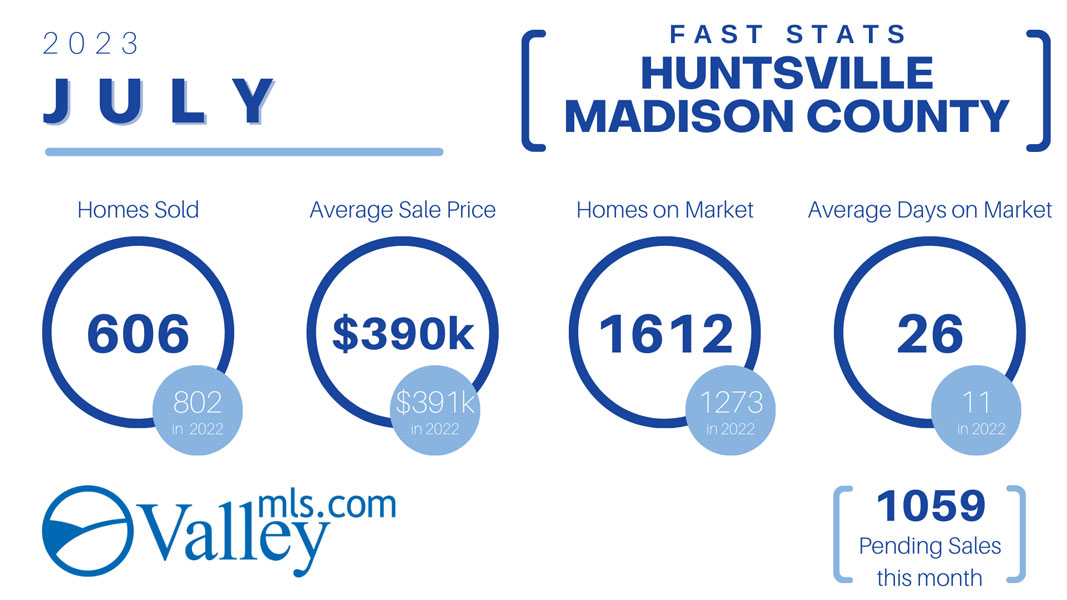 HUNTSVILLE — More homes are on the market in North Alabama than there were a year ago, according to the Huntsville Area Association of Realtors. The statistics are for July 2023 from valleymls.com.