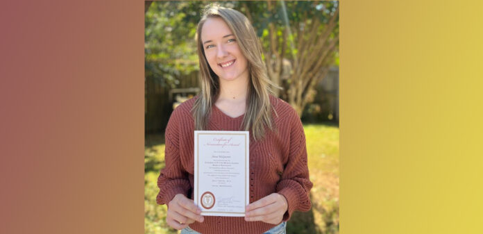HUNTSVILLE — Shara McQuiston, a junior at Valley Fellowship Christian Academy in Huntsville, has been nominated as a delegate to the Congress of Future Medical Leaders. The event is June 21-23, 2023 at the University of Massachusetts-Lowell.