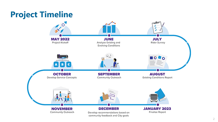 Expanded paratransit service, improved pedestrian crossings and bus stops, and potential partnerships with universities and colleges were also recommended.
