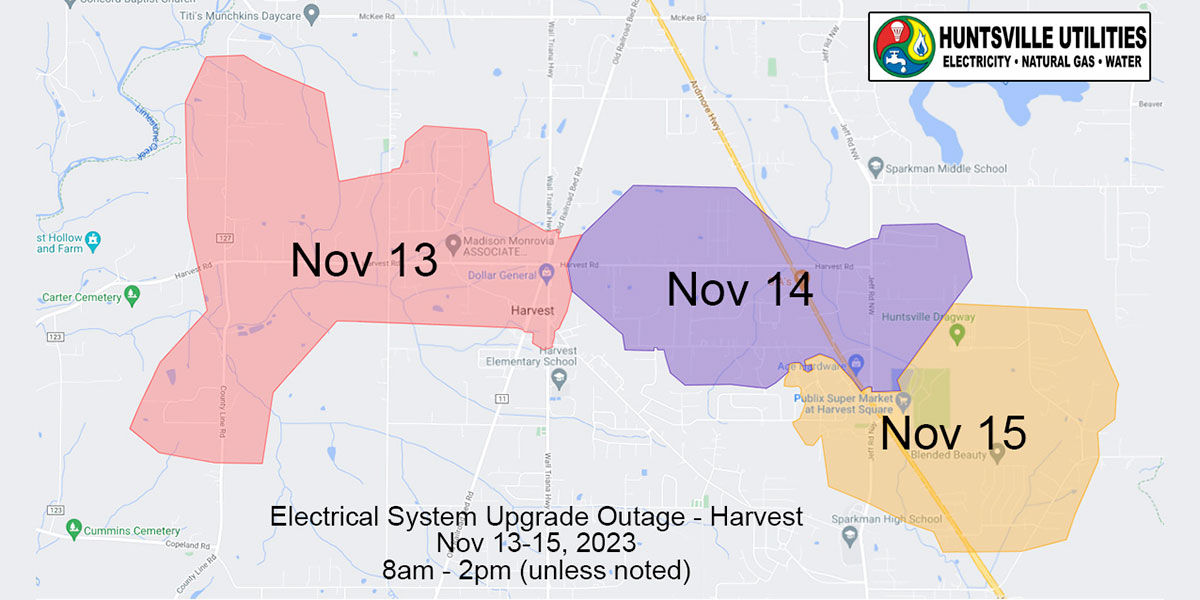 The work will require service interruptions starting about 8 a.m. Monday through Wednesday and last for about six hours, Huntsville Utilities said in a news release.