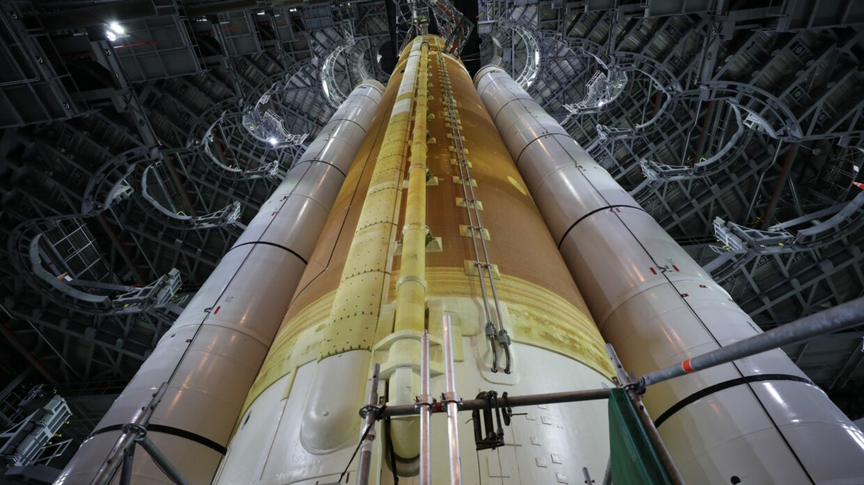 Teams have extended work platforms around SLS and Orion to assess the exterior and access internal components, NASA said. Exterior inspections will note any foam or cork from the thermal protection system on the rocket or spacecraft that may need repairing.