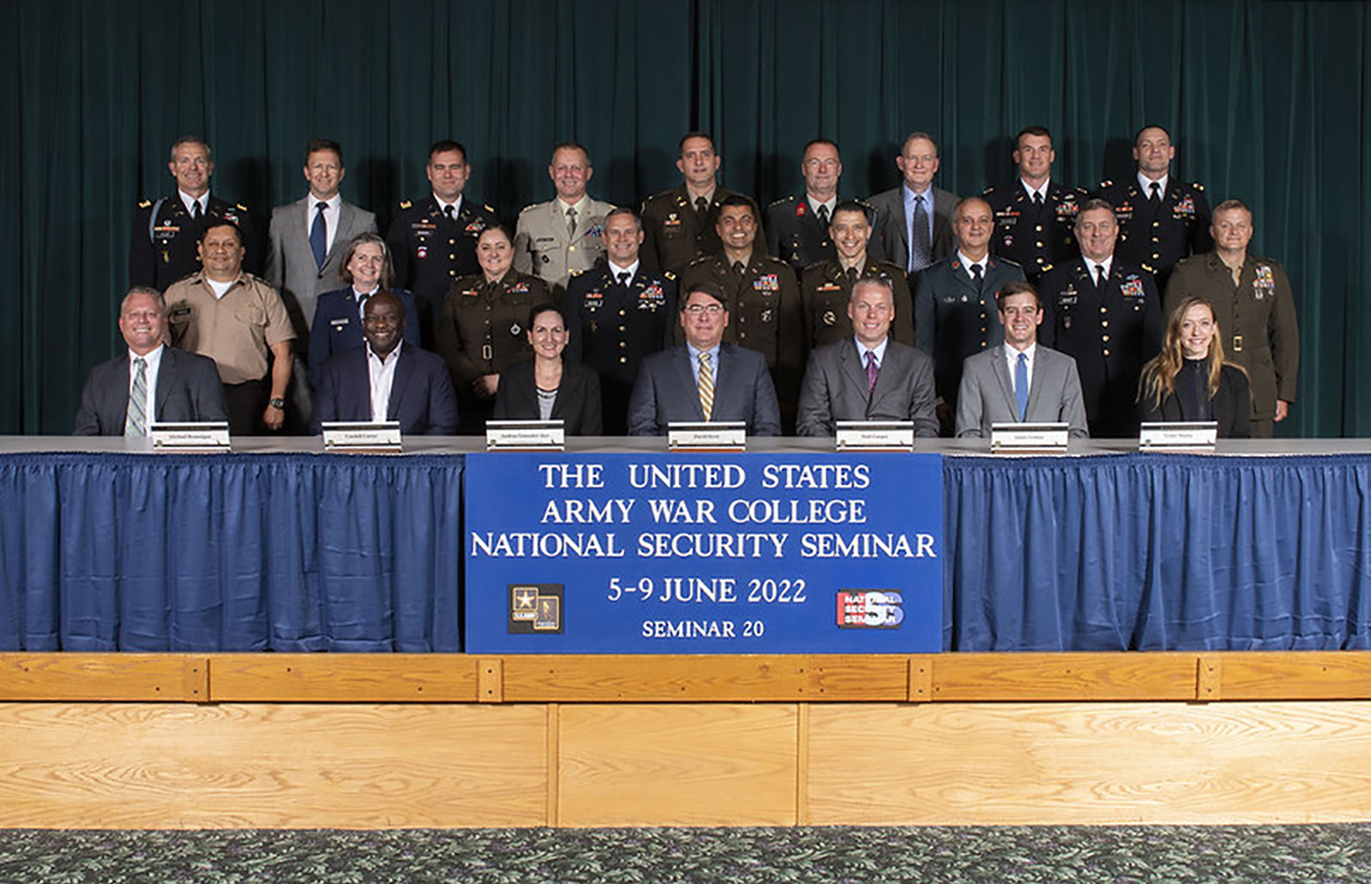 The seminar provides academic and social interaction with Army War College students, who represent senior officers in the Army, Air Force, Navy, Marine Corps, Coast Guard, and other nations’ armed forces, with senior federal agency civilians.