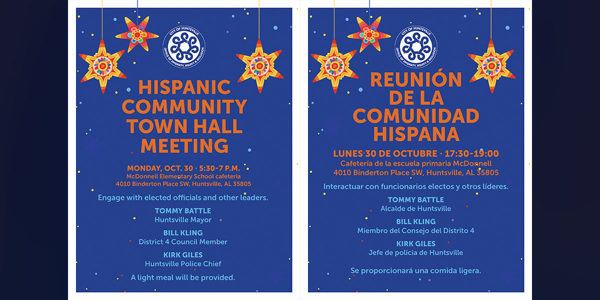 Huntsville extended its outreach to the Hispanic community more than a decade ago with the formation of the Hispanic/Latino Advisory Council, which works closely with the diversity office. Anderson said the town hall is an opportunity for the city to be more engaged.