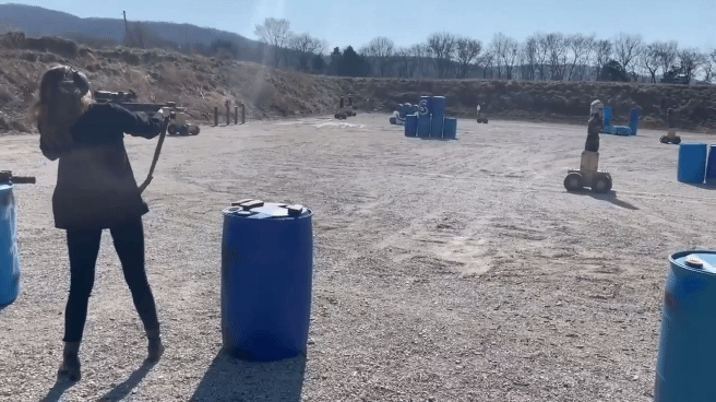 The robots designed by Marathon Targets run on a four-wheeled framework with “flat wheels” to conduct live fire training over uneven terrain in field environments. The system uses lidar to navigate and collision avoidance built in. Petroff compares the technology to self-driving cars. The human-shaped targets also react when shot, falling over or wobbling in movement, and are equipped with speakers that simulate speech or sound effects.