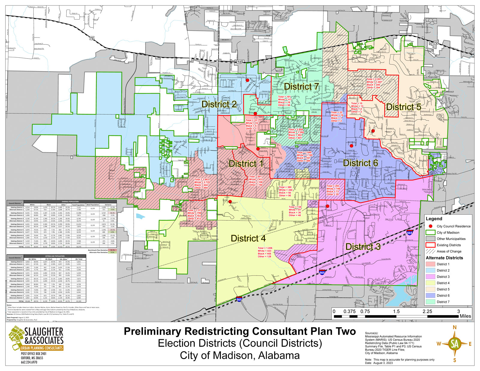Mike Slaughter of Slaughter Associates, the city’s redistricting consultants, began the presentation with two plans.