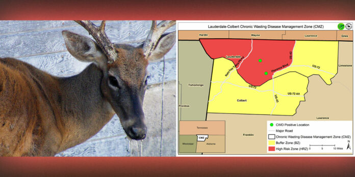 CWD is a contagious neurological disease of white-tailed deer and other deer species. It is always fatal for white-tailed deer. The first case of CWD in Alabama’s deer herd was detected in Lauderdale County last January.