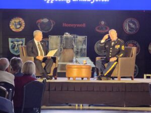 The event, in the Davidson Center at the U.S. Space & Rocket Center, featured an interview with Davis and Robert F. Jerome, who has made it his mission to honor living Medal of Honor recipients and to share their stories. It was presented by Merrill Lynch in Huntsville and organized by Senior Resident Director David Staley.