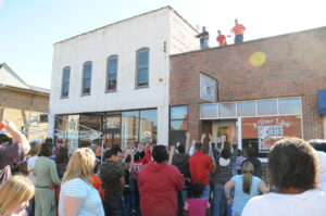 Today, turkeys are still released from the roof of a building to a waiting crowd but they are toy turkeys that the lucky person can trade in for a frozen bird. In addition to attracting visitors to Collinsville for a day of fun, the event has become a major fundraising activity for the restoration of the Cricket Theatre.