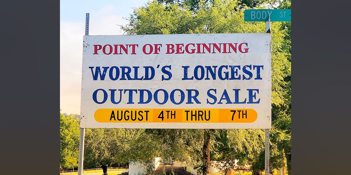 Created to get travelers off the interstate and into towns and communitiesoff the beaten path, the World’s Longest Yard Sale takes visitors on a shopping excursion through some of the country’s most scenic areas.