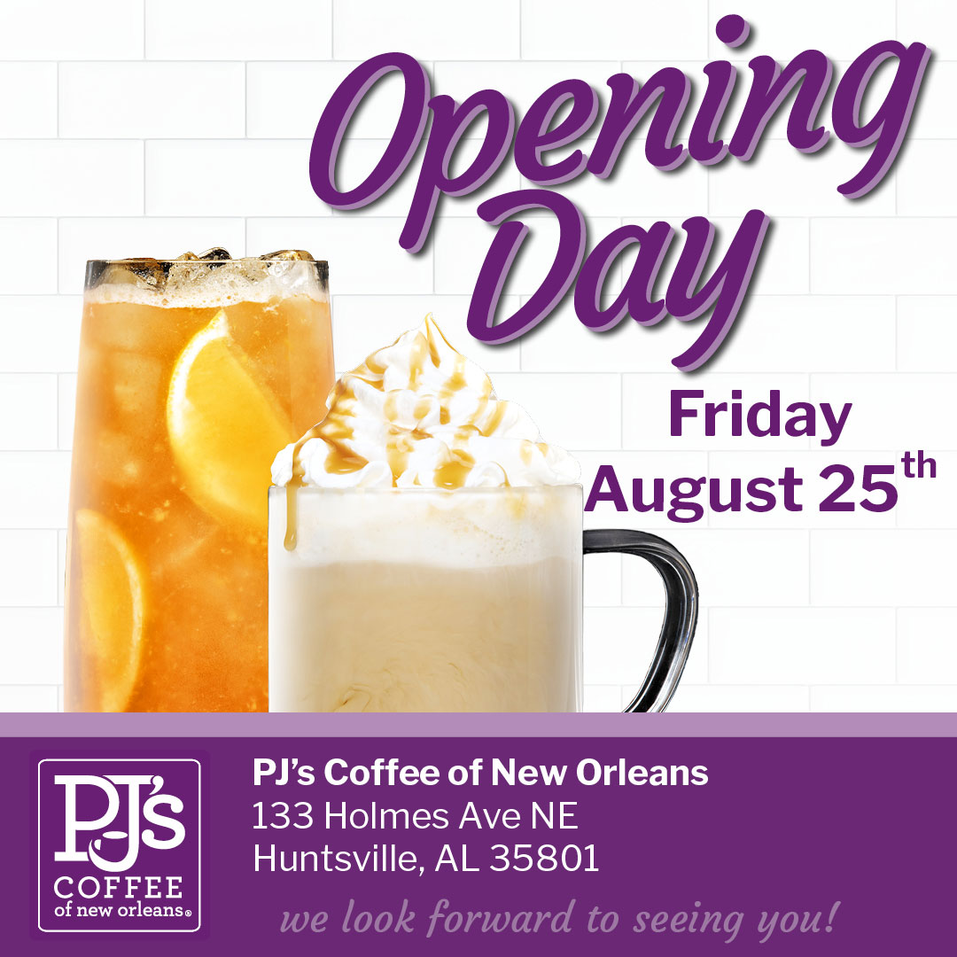 PJ’s Coffee of New Orleans is hosting a soft opening 6 a.m. Friday at its walkup location adjacent to the Regions parking garage on Holmes Avenue. Outdoor seating is available.