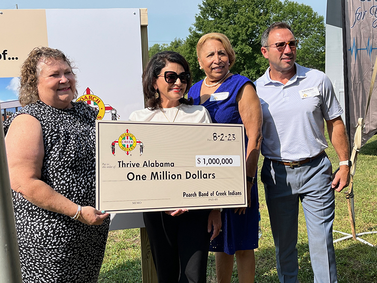 There was an audible “wow!” from the audience Wednesday when Stephanie Bryan, tribal chair and CEO of the Poarch Band of Creek Indians, presented a $1 million check to Mary Elizabeth Marr, chief executive officer of Thrive Alabama.
