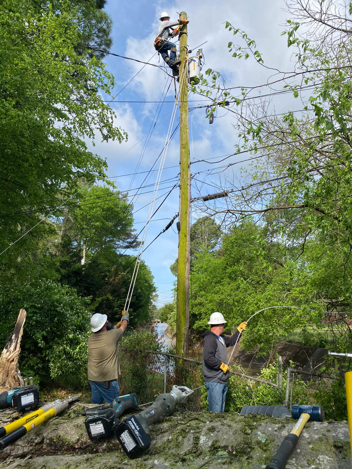 The work itself is hazardous. A crew member was shocked last Friday working a line in Huntsville. He is in stable condition in UAB Hospital, Gehrdes said.