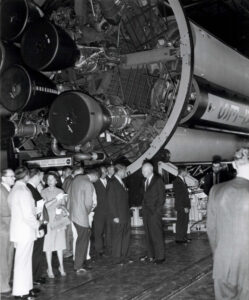 Perhaps the most famous visits to Huntsville was when President Dwight Eisenhower spoke at the dedication of the Marshall Space Flight Center in 1960; and President John F. Kennedy on two occasions in 1962 and again in 1963, just weeks before he was tragically shot, both times in support of the space program at Marshall Space Flight Center. He reassured his commitment to putting Americans on the moon and he joined Dr. Wernher von Braun and his team of rocket scientists on a tour of MSFC.