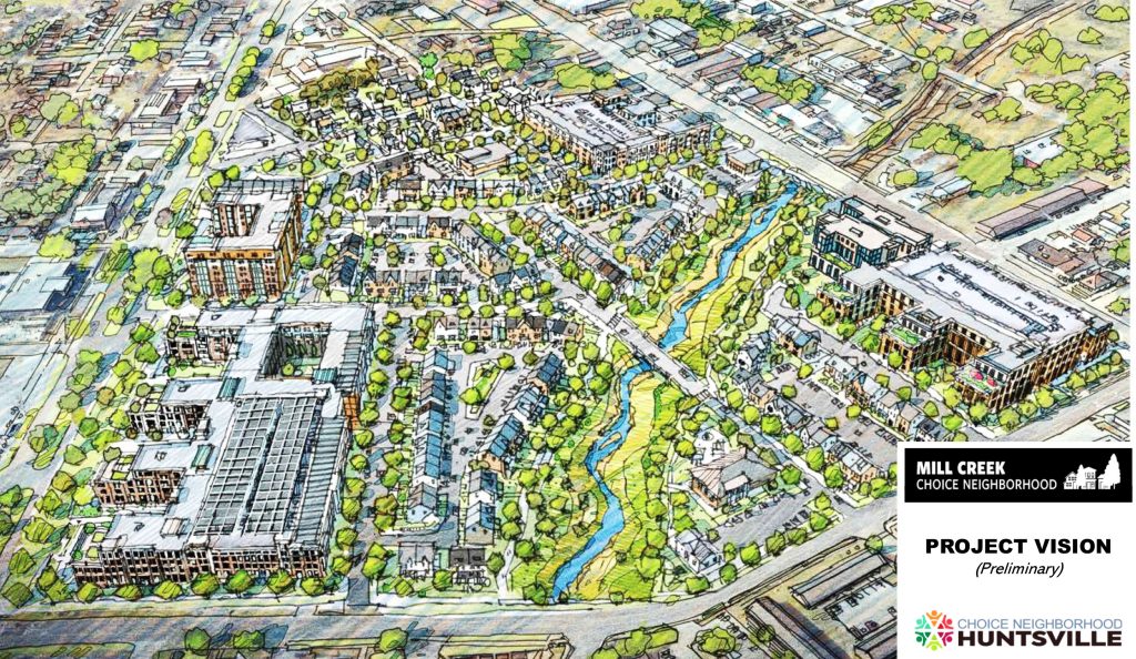 The project, Mill Creek, is spearheaded by the city’s Planning and Community Development departments and the Huntsville Housing Authority and involves new affordable housing.
