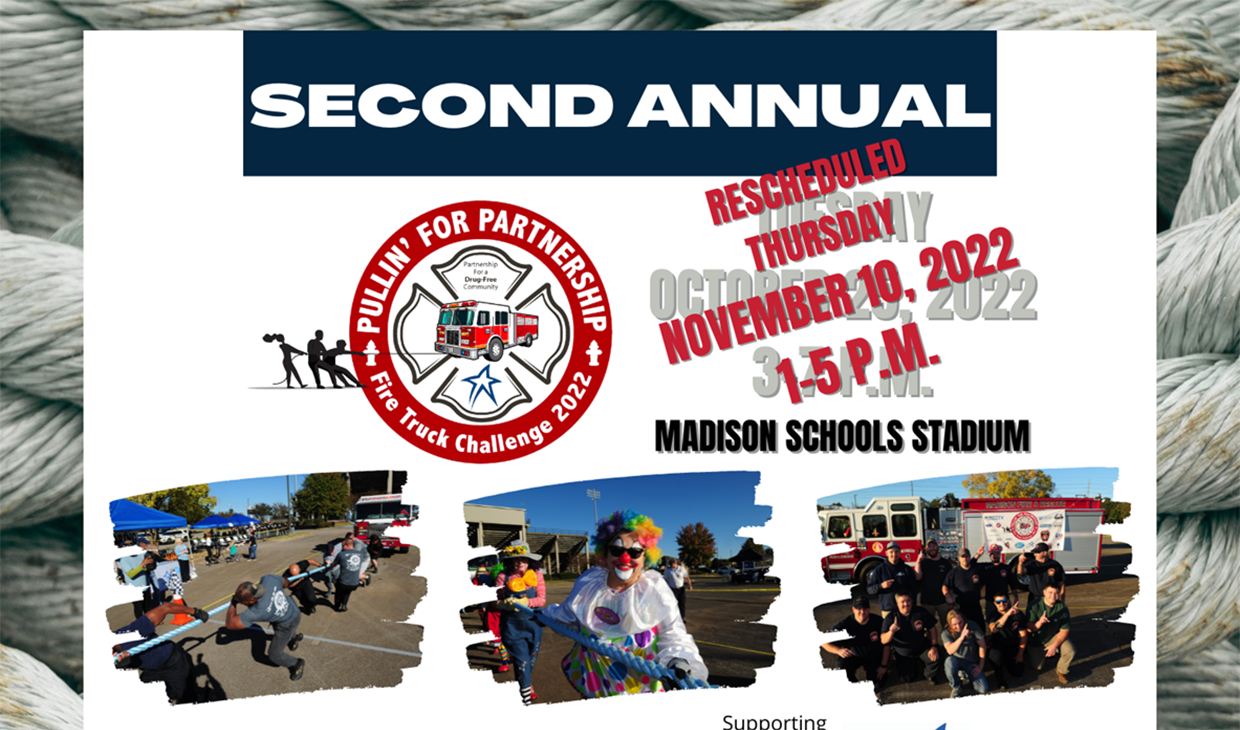 The Partnership for a Drug-Free Community and Madison Fire & Rescue event will be from 1-5 p.m. at Madison Schools Stadium at 211 Celtic Drive in Madison.