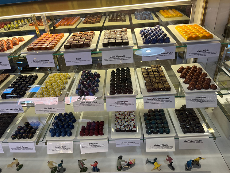 While attending Ecole Chocolat, she discussed the idea with her instructor about opening a fine chocolate shop in Huntsville. The sisters had been involved in the arts and culture community here for years, even before Lowe Mill opened. There was not another candy maker in Huntsville at the time and the timing seemed right.