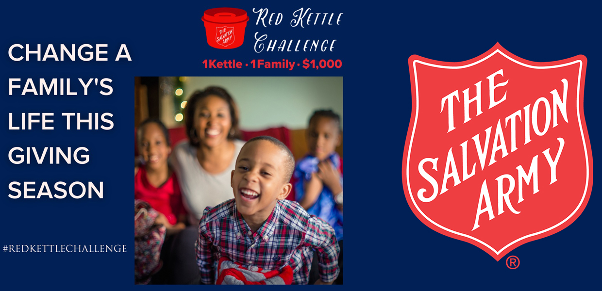 While the classic Ringing at the Red Kettle returns to select retailers, the latest addition is the Red Kettle Challenge, a friendly competition that encourages local businesses, organizations, and families to raise at least $1,000 for the Salvation Army, after which they then challenge others to do the same.
