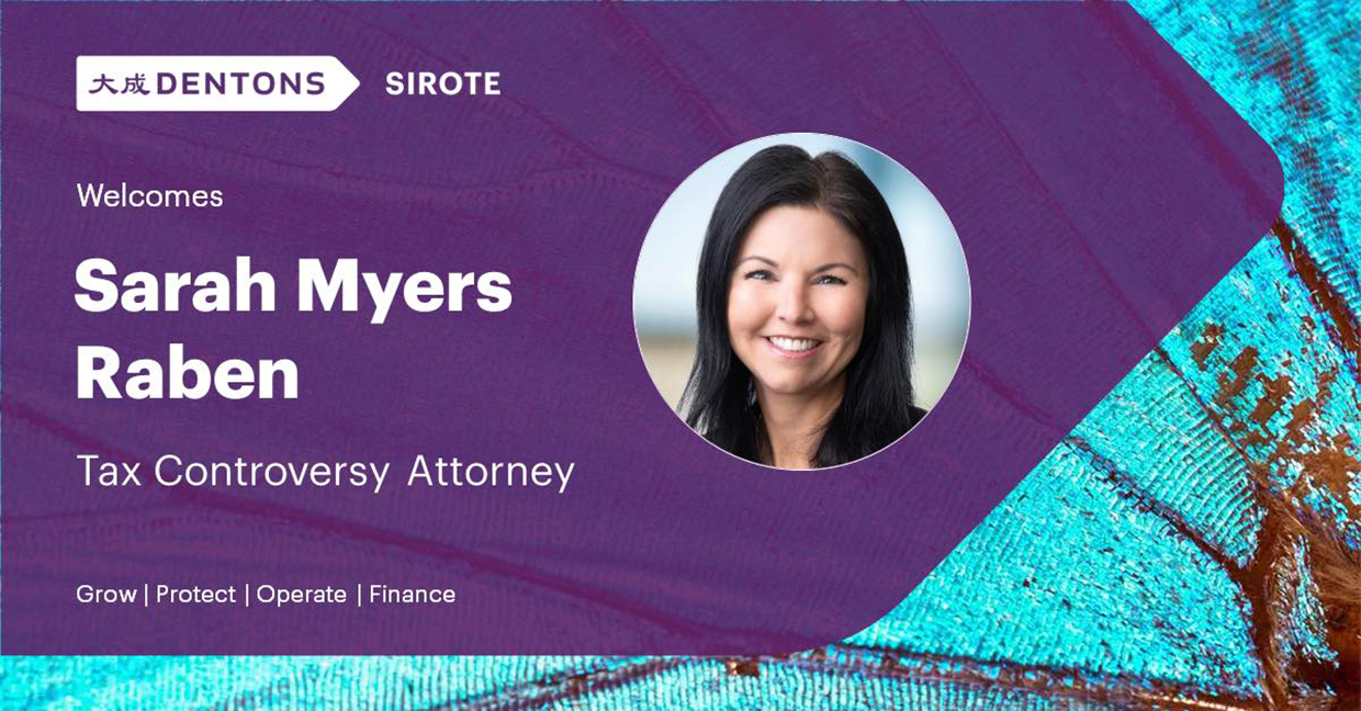 “We are delighted to welcome Sarah as the latest addition to our growing Tax Controversy team,” said Gregory Rhodes, chair of Dentons Sirote’s Tax Controversy team. “Her knowledge and experience in tax litigation and dispute resolution will allow us to continue providing our clients with exceptional service.