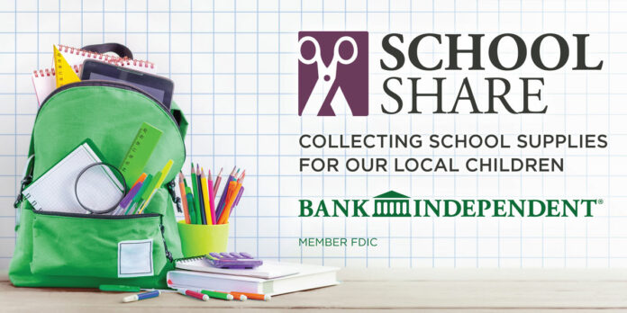 School Share is part of Bank Independent’s Helping Hands program, which includes team member volunteer efforts, donations and sponsorships. Other Share drives include Toy Share to collect toys for children during the holiday season, Shelter Share to benefit animal shelters, and Food Share to collect non-perishable food items.