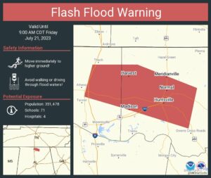 “We’re expecting showers and storms to continue, especially over Limestone and Madison counties down into Marshall and Dekalb counties through mid-morning,” the forecasters said. “While some gusty winds are possible in the stronger storms, we are growing increasingly concerned about flooding and flash flooding from the heavy rain due to training storms and runoff.