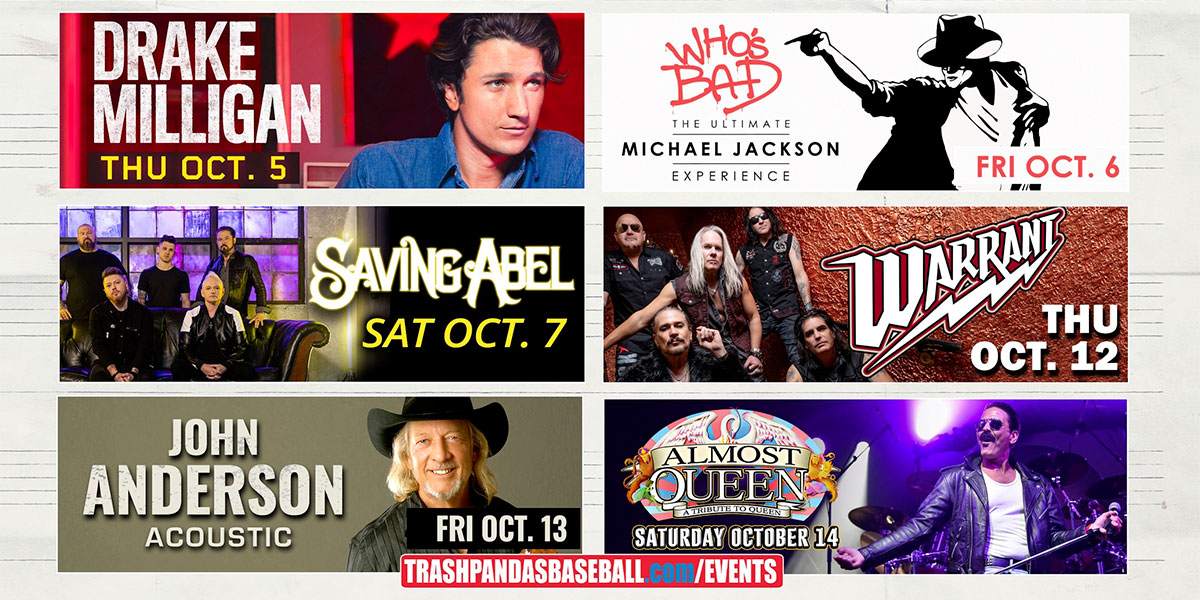 The concerts are part of a fall series of events at Toyota Field that includes Military Tribute Night featuring the USA Patriots Amputee Softball and Team AUSA on Sept. 16, a Fall Festival on Oct. 28, and the return of the Rocket City Christmas Light Show in November.